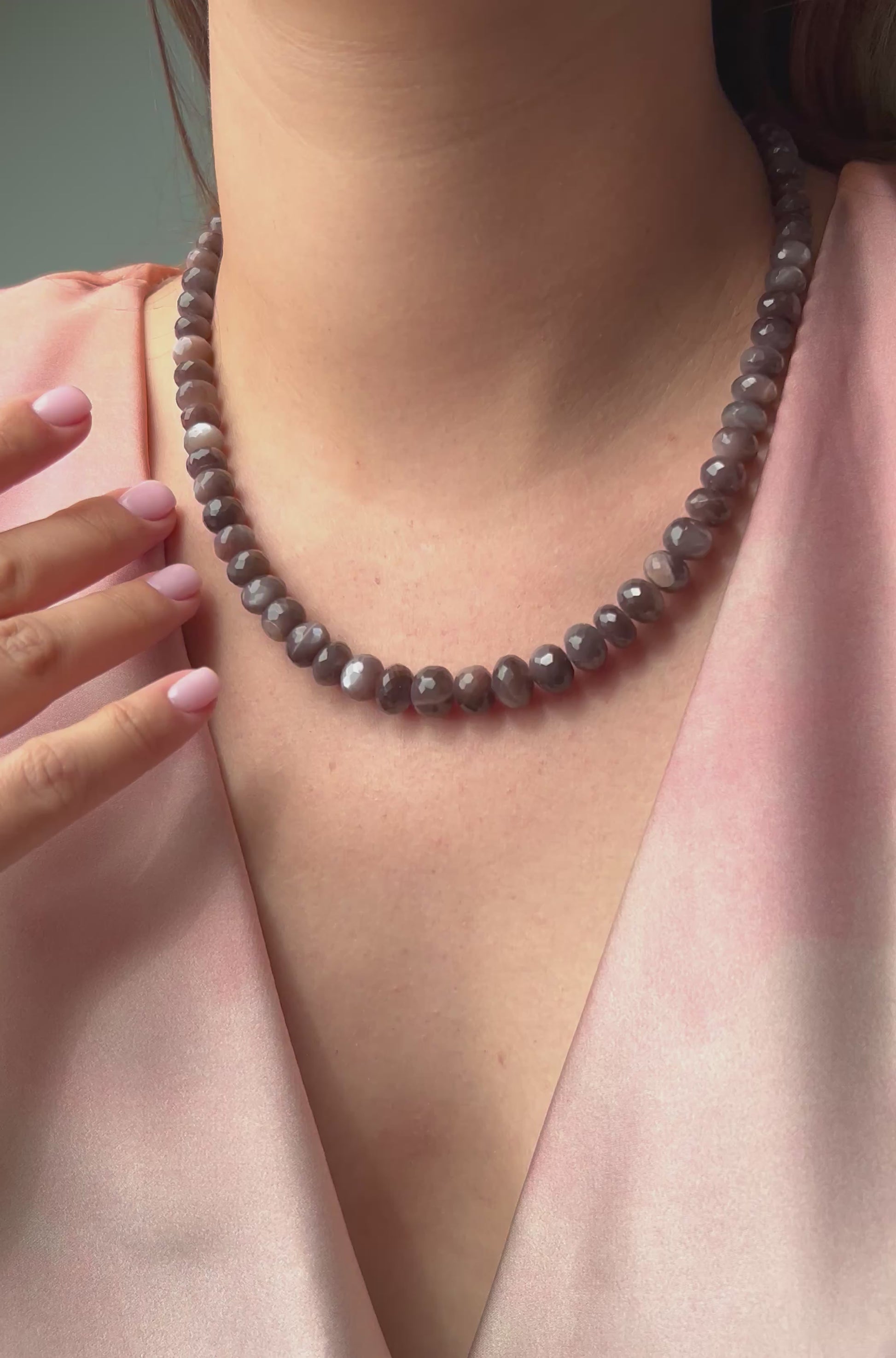 Különleges, fazettált csokoládé barna holdkő nyaklánc. Igazi ritkaság, amely most a legtrendibb színben lehet a tiéd!
