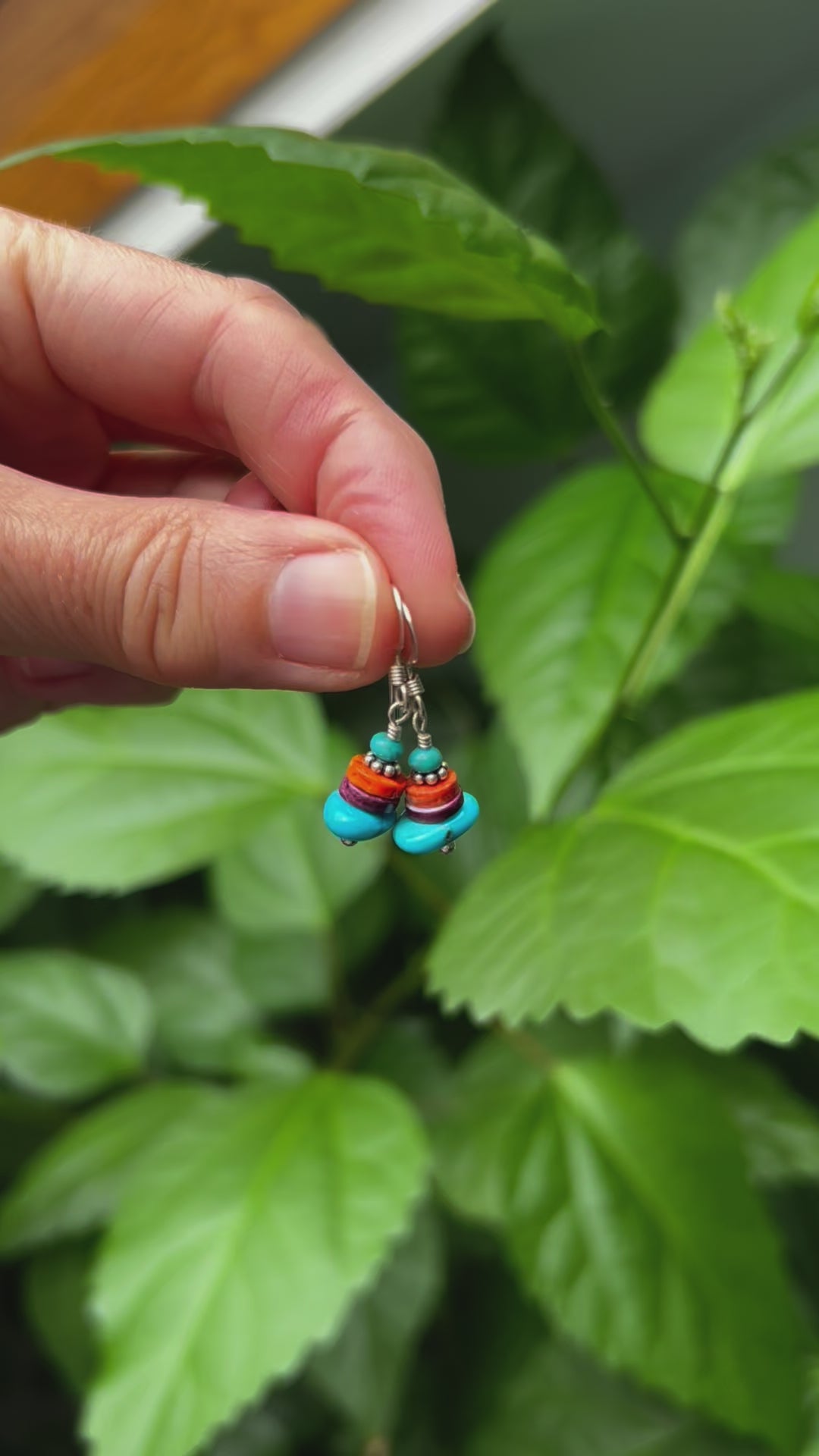Vidám, élénk kék színű Sleeping Beauty türkiz fülbevaló, Spondylus kagyló csiszolatokkal.