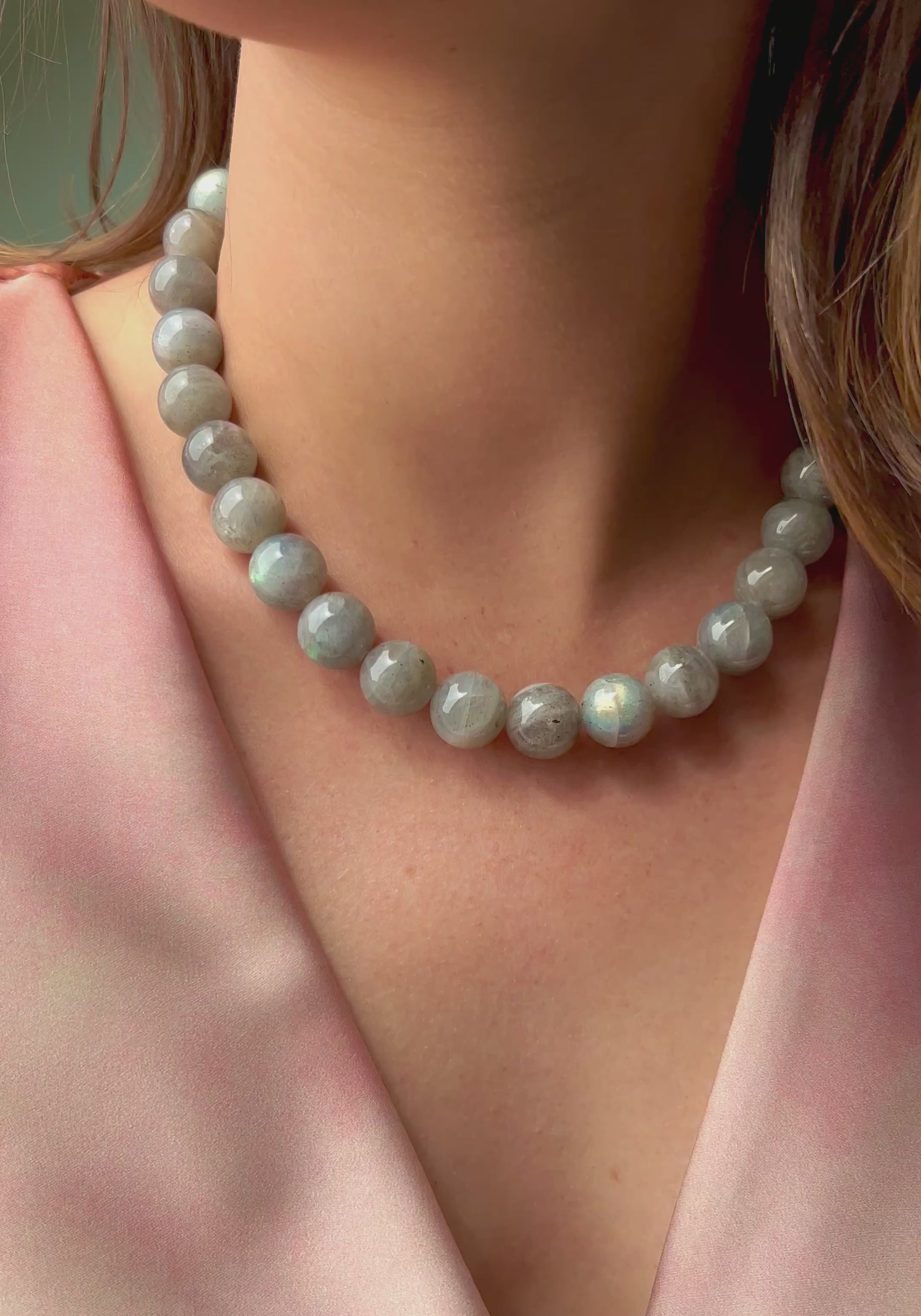 Nagyszemű labradorit nyaklánc, amely csodás megjelenést nyújt bármikor is viseled.