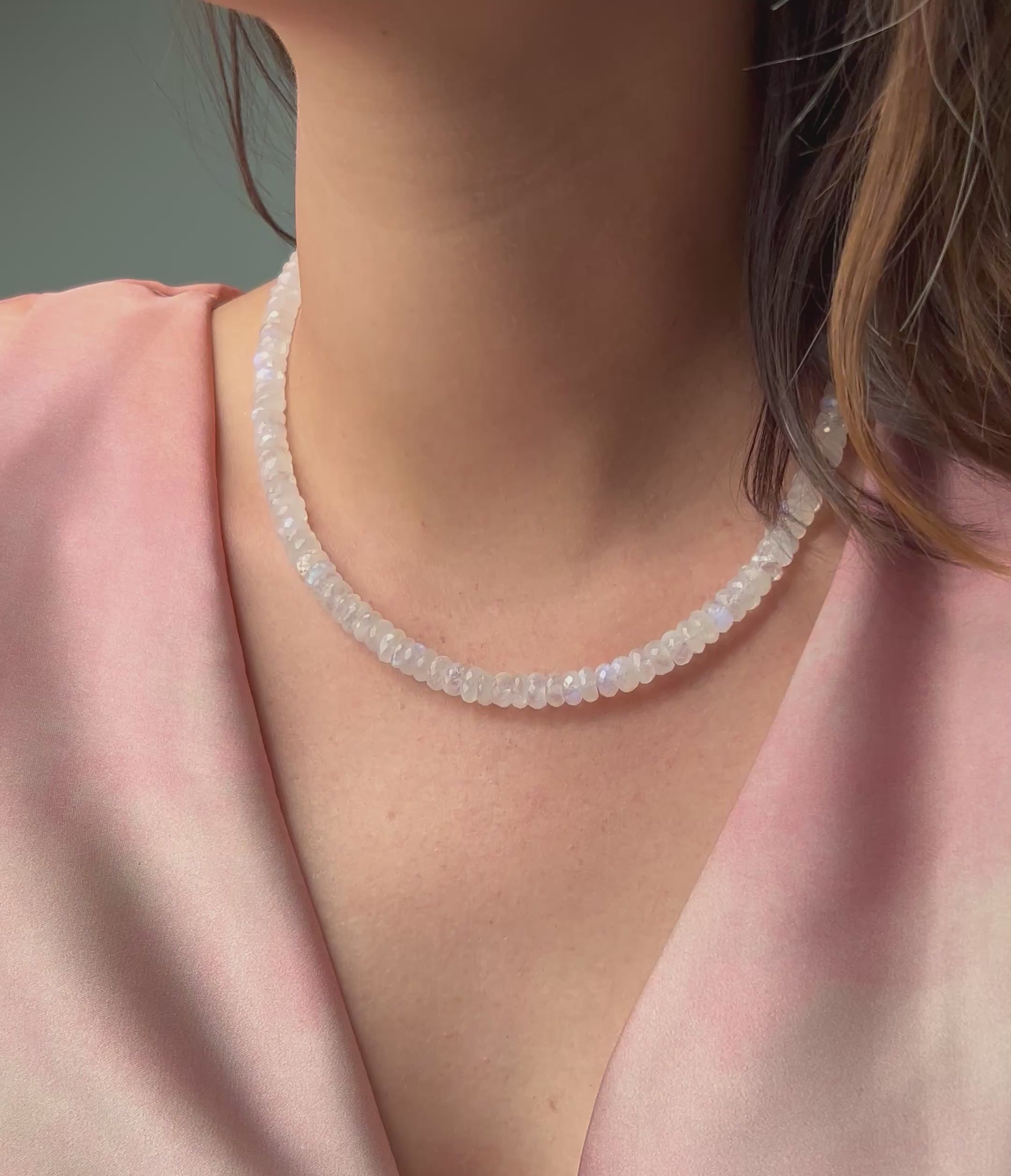 Szépséges, fazettált szivárvány holdkő nyaklánc. Egyszerű, mégis magával ragadó ékszer a mindennapokra.
