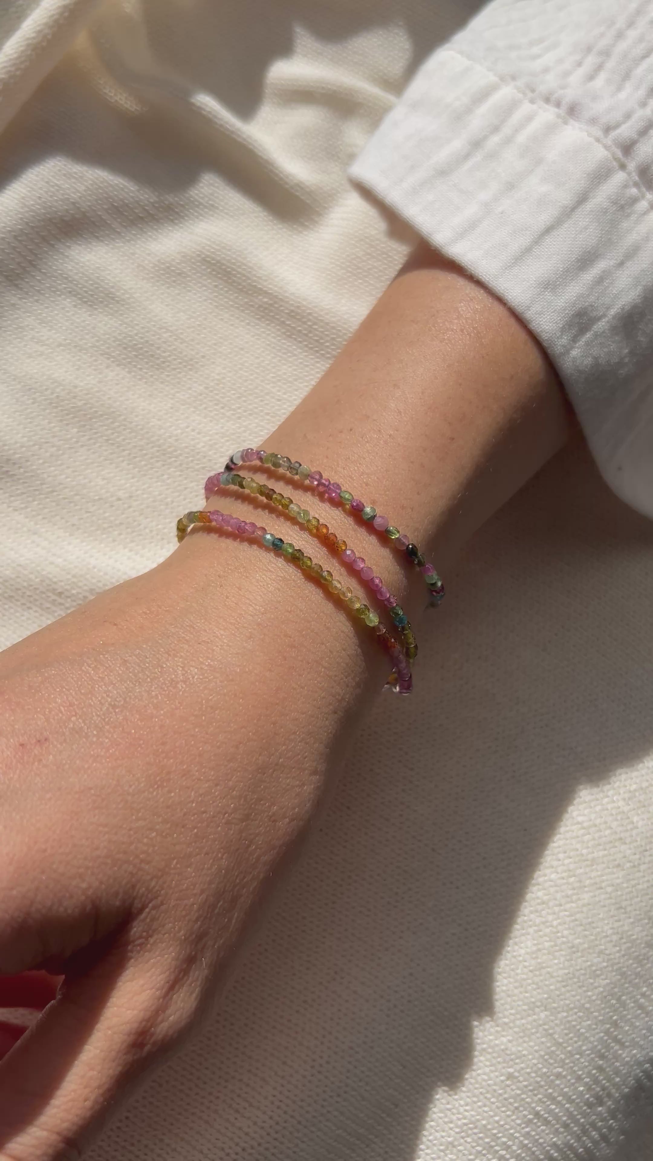 Igazi kis színkoktél egy karkötőben. Ha olyan ékszerre vágysz amely bármilyen alkalomra tökéletes, válaszd ezt a dupla soros turmalin karkötőt és élvezd a színek játékát!